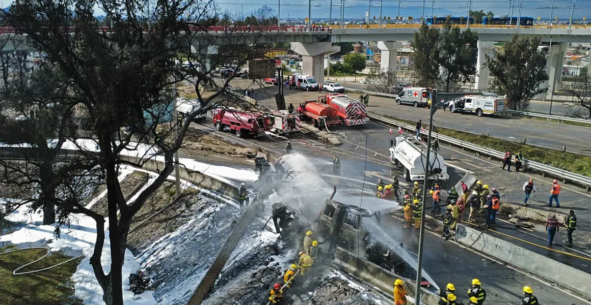 De acuerdo con la Fiscalía capitalina, la pipa, que transportaba 49.500 litros de gas LP, se volcó en una curva cerca del paradero de Santa Marta, cerca de los límites entre la capital mexicana y el Estado de México.