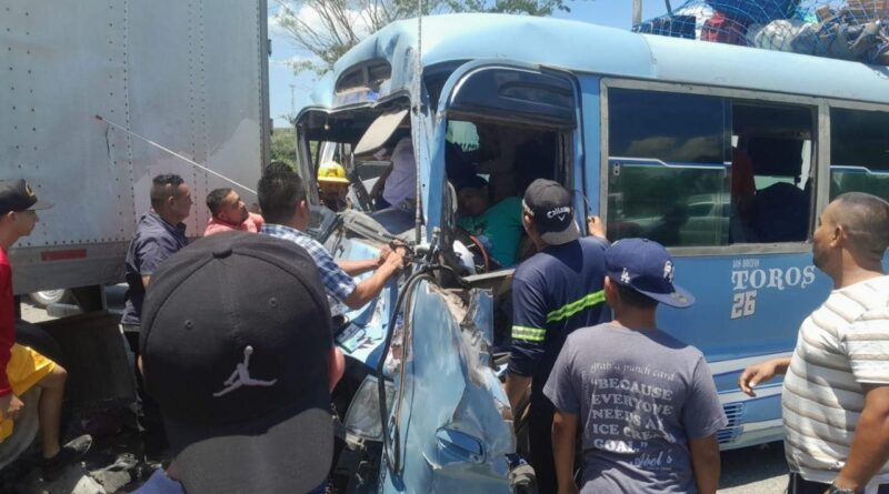 Bus ‘rapidito’ impacta contra rastra en Naco; se reportan varios heridos