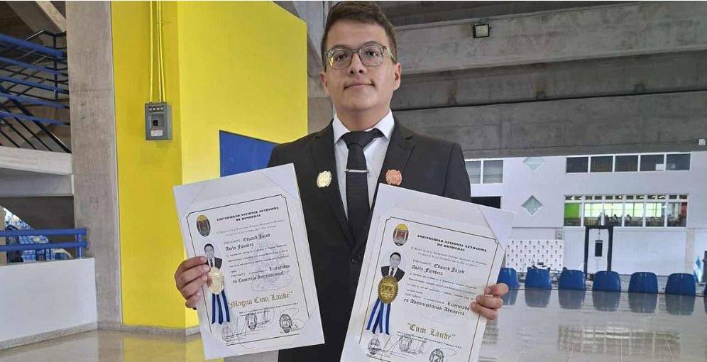 El joven hondureño Eduard Jared Ávila alcanzó un destacado logro académico al graduarse con dos títulos profesionales en el área económica a la edad de 23 años, en la Universidad Nacional Autónoma de Honduras (UNAH).