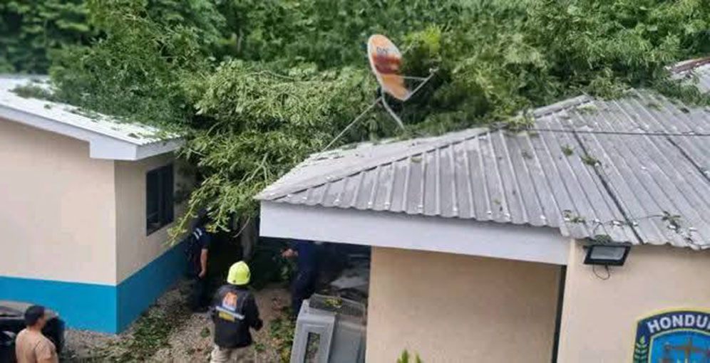 QUIMISTÁN, Santa Bárbara. Una intensa ráfaga de vientos huracanados azotó hoy miércoles la comunidad de La Ceibita, en el municipio de Quimistán, provocando graves daños estructurales en la Posta Policial local, caída de árboles y la interrupción total del servicio de energía eléctrica en la zona.